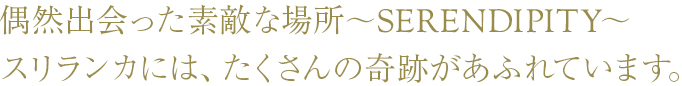 スリランカを含め、東洋と西洋を結ぶ海路に位置する小さな島々は、かつて「セレンディップ島」と呼ばれていました。美しい宝石や当時の貿易の一等品であったスパイスが入手できることから、「偶然に出会った楽園=SERENDIPITY」として世界中の人々に愛されていたのです。